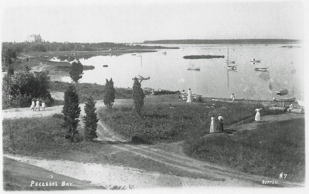 It’s Hen Cove; not Hen’s Cove. At least that’s the legend I learned from my grandmother many years ago. When this postcard photo was made more than a century ago it was apparently called Pocasset Bay. Hen Cove is the middle leaf of the three-leaf clover shape of Pocasset’s harbors, the others being Barlow’s Landing and Redbrook Harbor, which is actually in Cataumet. Hen Cove is the shallowest of the three harbors. My brother Ken and I both learned to sail there. Our family used to joke that if we ever got into trouble, we could just get out and walk home. Ken once flipped his home-made sailfish and the mast simply stuck in the mud.