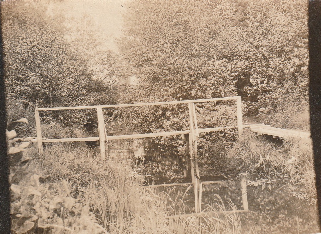 While sorting through a box of old family photos, I came across this one, labeled on the back “Footbridge to Patuissett 1901” in neat handwriting. And yes, Patuisset is misspelled. The photo shows a crude plank bridge with a handrail crossing a small stream. This bridge was likely used by local clammers, as the area was rich in quahogs until the middle of the twentieth century. It might have been located farther north than the current location of Circuit Avenue, possibly at the end of what is now Wabash Avenue, as the vegetation appears to not extend far beyond the bridge. The stream separating the island from the mainland existed until the town created the Hen Cove beach in the 1950s.
